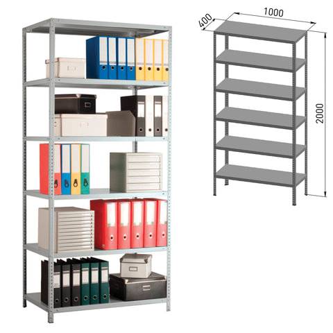 • Стеллаж металлический ПРАКТИК "MS", 2000х1000х400 мм, 6 полок, MS 200/100х40/6